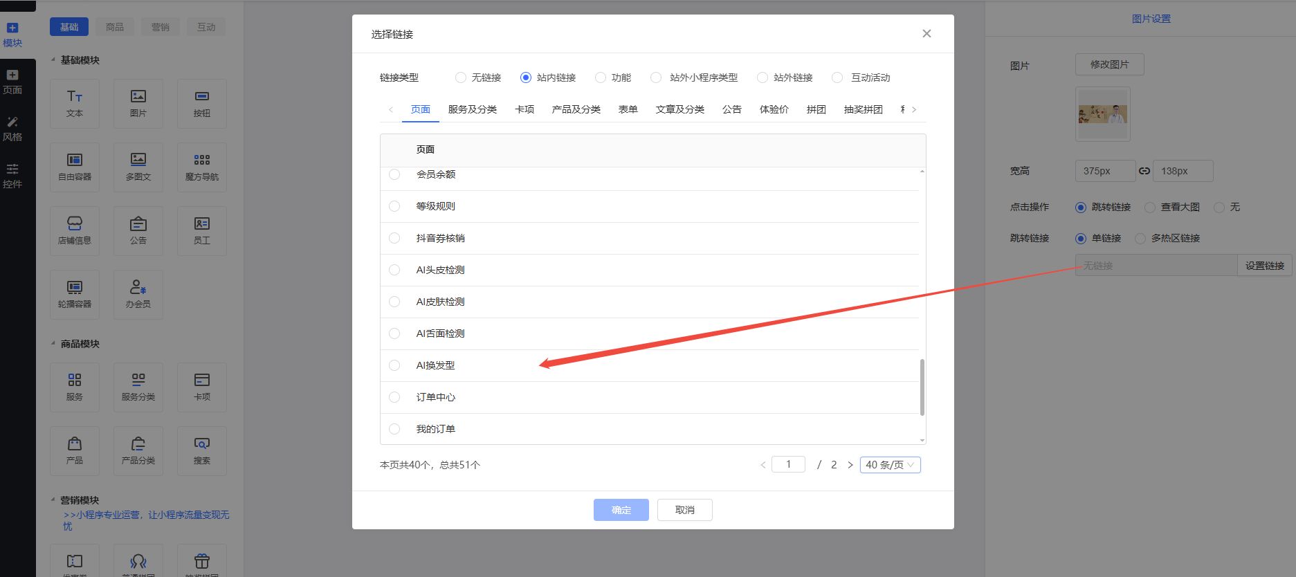 2.店铺装修跳转链接可设置跳转“AI换发型”、装修/多平台小程序推广中页面分享可获取“AI换发型”